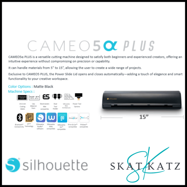 Skat Katz, alongside Silhouette America is proud to introduce a new era of crafting with Silhouette’s latest cutting machine: the Silhouette CAMEO5α(Alpha) PLUS. Designed for crafters and hobbyists of all levels who value elegance, versatility, and exceptional precision, this sleek yet powerful cutting machine is set to elevate every stage of the creative journey.